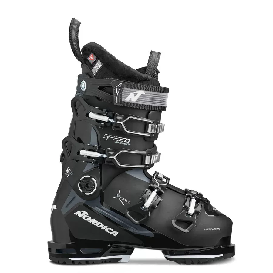 Enjoy everything the mountains have to offer with Nordica’s Speedmachine 3 85 W. Inspired by decades of refinement, this legendary women’s all-mountain boot has been completely redesigned for even greater comfort and performance. Nordica’s 3 Force technology maximizes the transmission of energy from the leg and foot to the liner and shell for exceptional power and efficiency. The boot’s softer flex offers incredible comfort and ease of use without sacrificing control. And for a truly personal fit, its liner and shell can readily be customized. Whether you’re lapping groomers with friends, exploring the bumps and trees, or chasing powder, Nordica’s Speedmachine 3 85 W allows you to forget about your feet and simply enjoy the day.